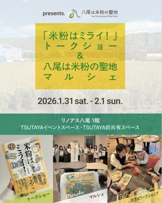 「令和6年度米粉需要創出・利用促進対策事業のうち米・米粉消費拡大対策事業」地域事業 ノコノコで受託をしています。事業名 八尾は米粉の聖地普及事業